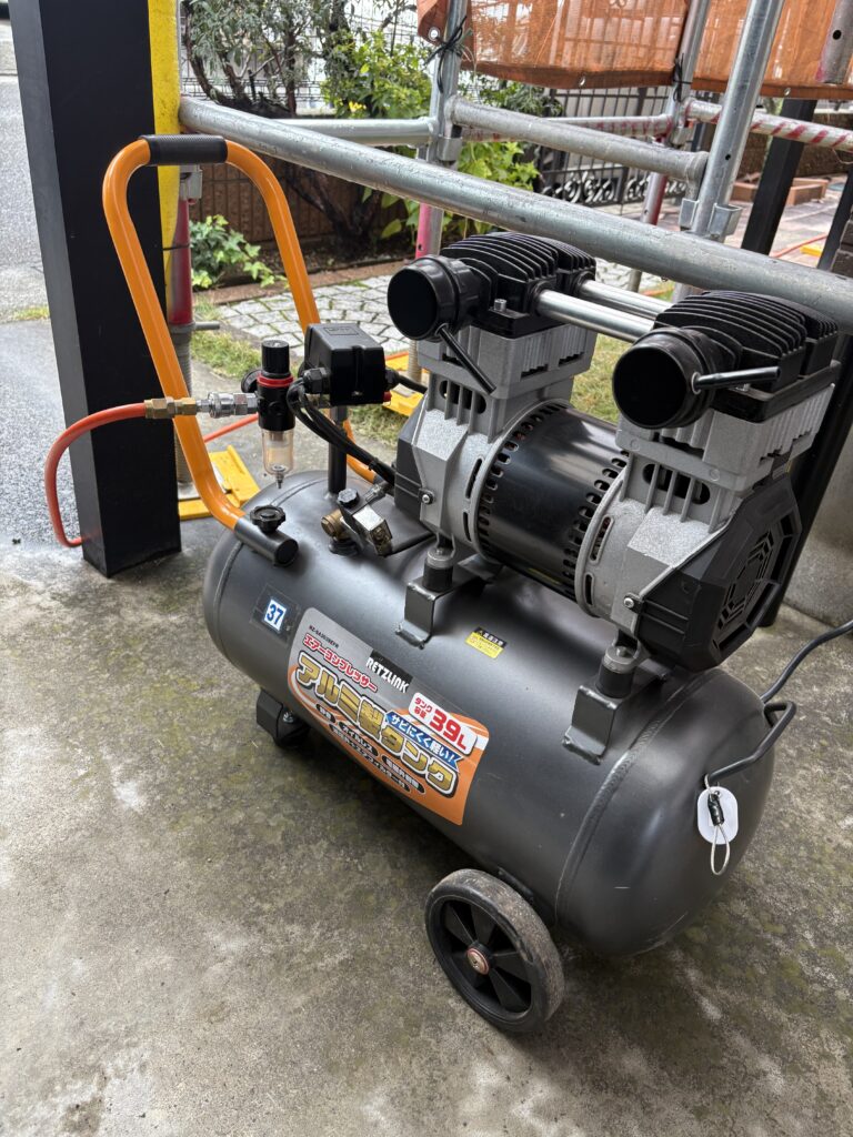 コンプレッサーを使用、圧で塗料を吹き付けていきます⭐