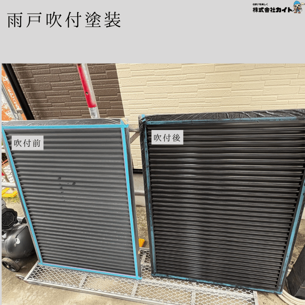雨戸は取り外して作業することが多く、平らな面を一気に塗装できる吹付塗装はスピーディーで効率的です🎨職人さんが慣れていれば、短時間で均一な仕上がりを実現できます!
