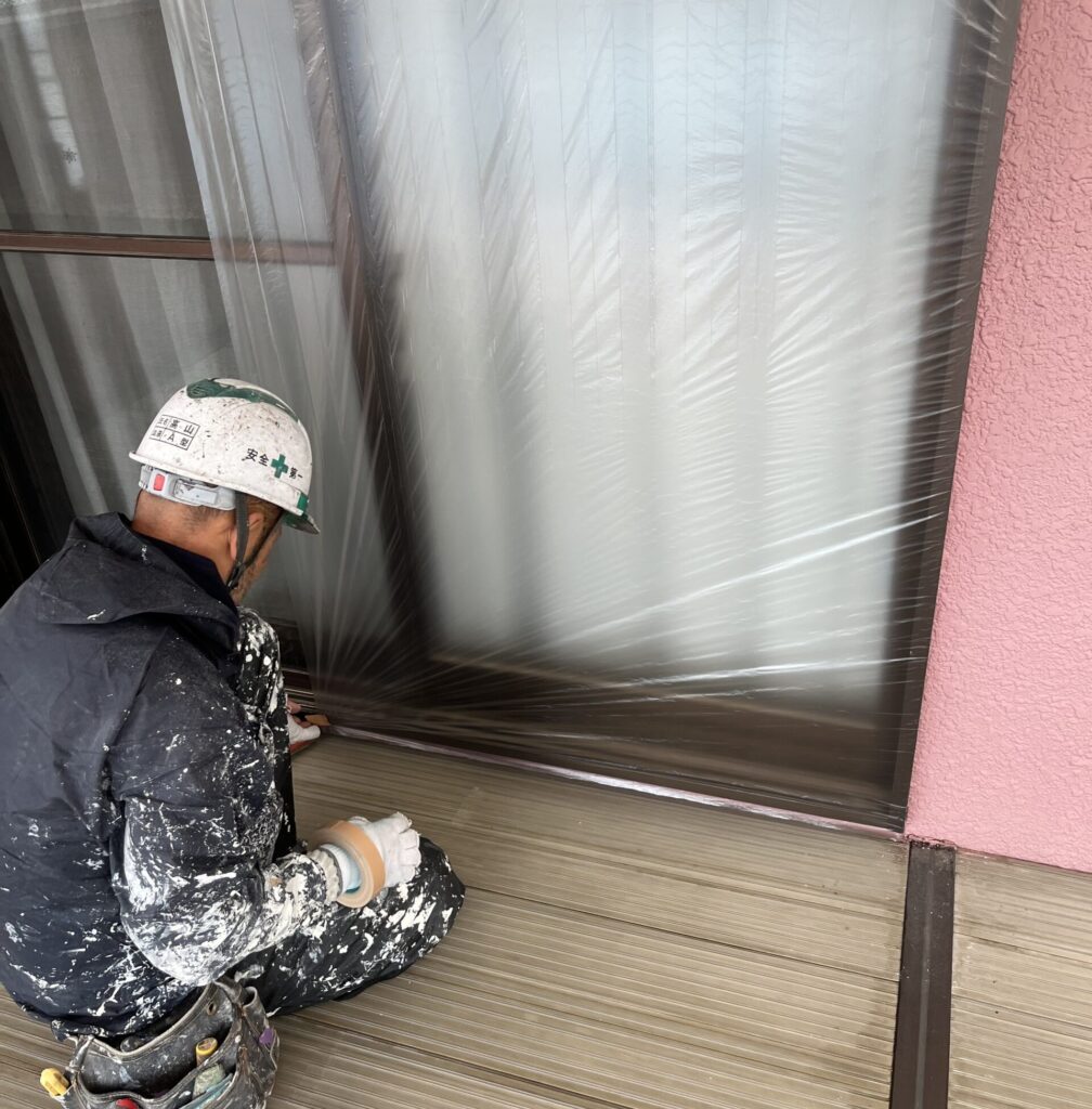養生作業は塗料の飛散防止と仕上がりの美しさを守る