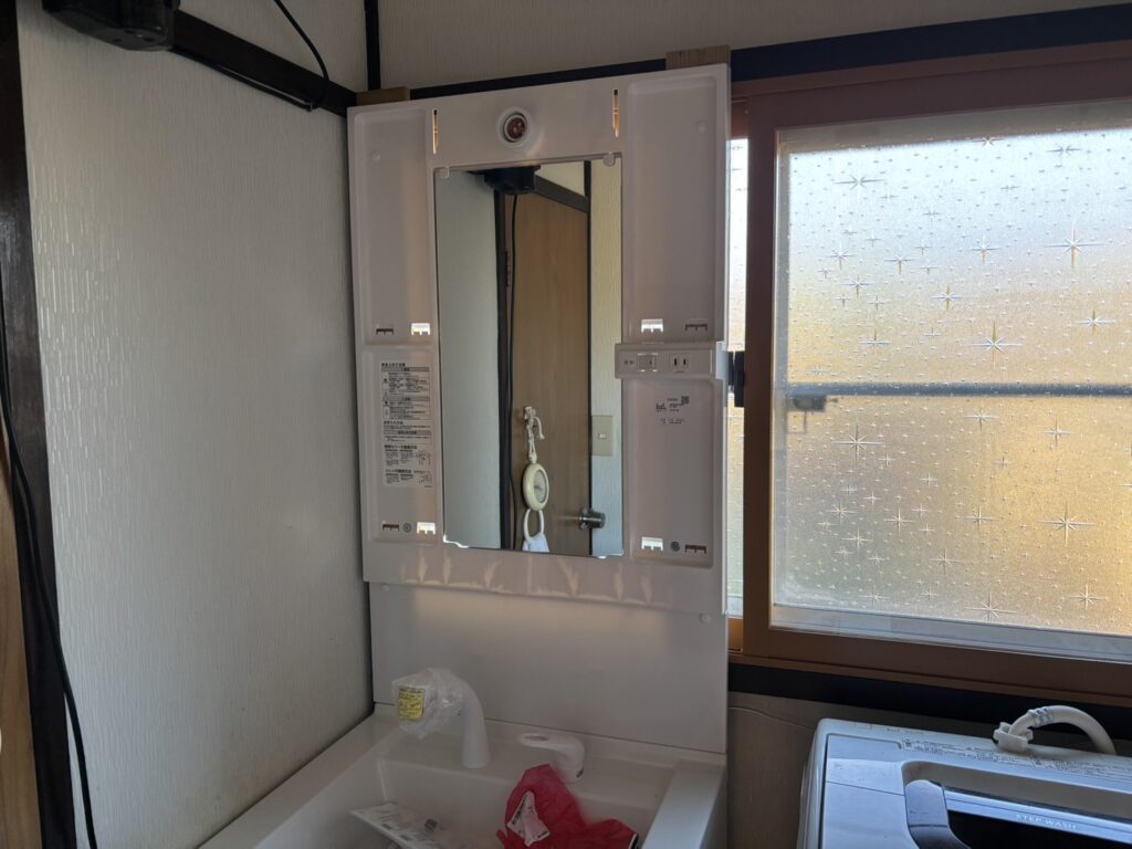 洗面台交換工事は内窓やミラーの関係で、下地の取付などいろいろと工夫しながら取り付けました☺️