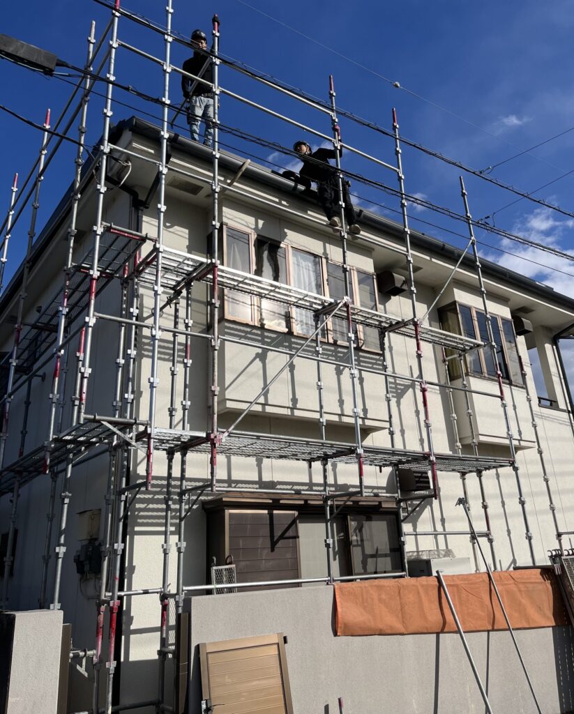 【甲斐市H様邸🏠足場設置&洗浄作業】|山梨県地域密着型塗装店(塗装のカイト)昭和町・甲府市・甲斐市・南アルプス市・中央市などを中心に活動中!