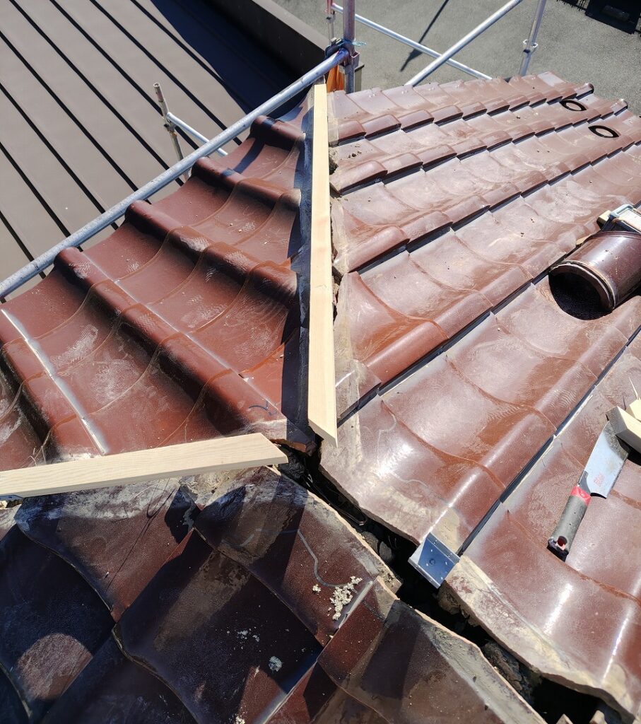 瓦屋根に破損している箇所があったため交換・修繕を行いました⛑️