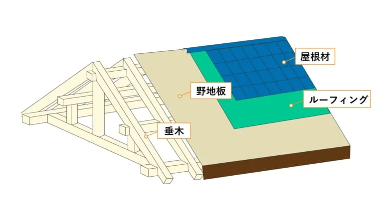 ルーフィングとは、屋根からの雨漏りを防ぐための防水シートです。