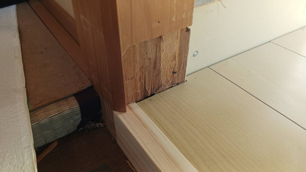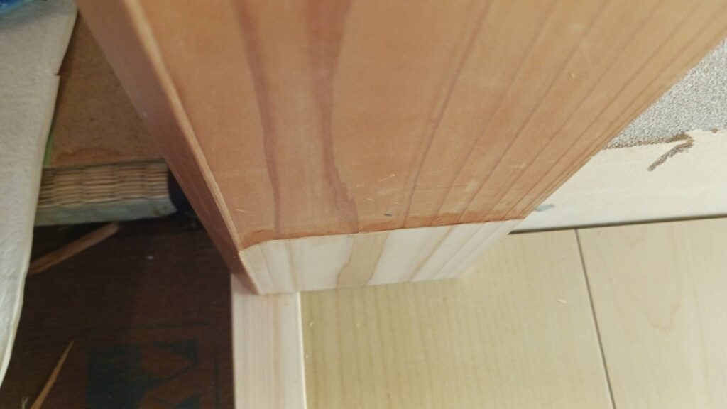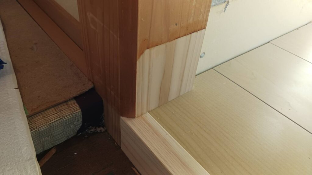 ⑥仕上げ調整 ➔ カンナやサンダーを使用して周囲の柱と段差がないように面を整える