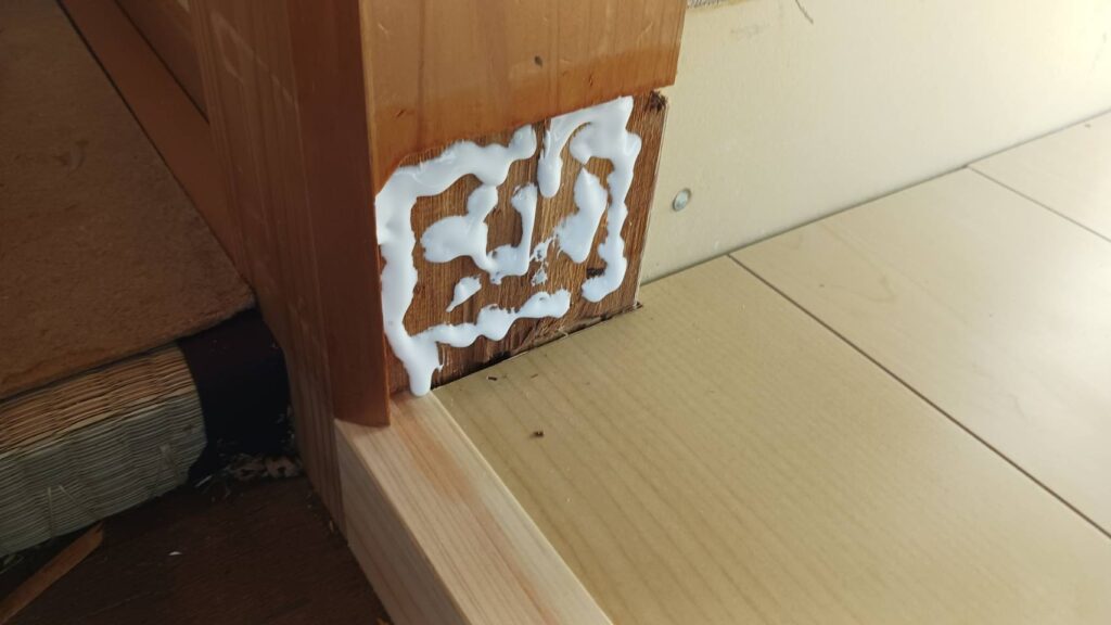 ④接着剤塗布 ➔ 木工用ボンドや構造用接着剤を両面にしっかり塗布