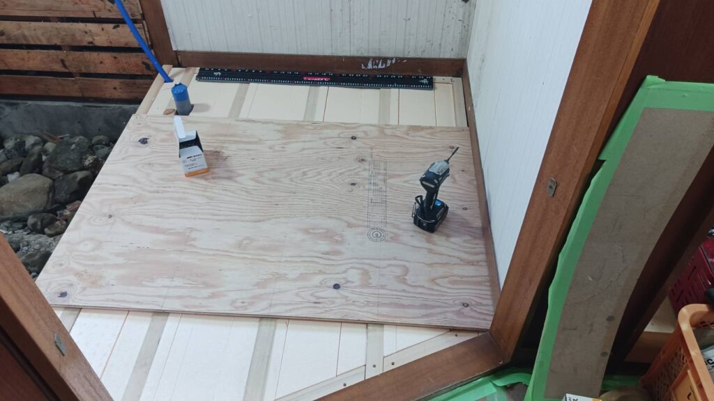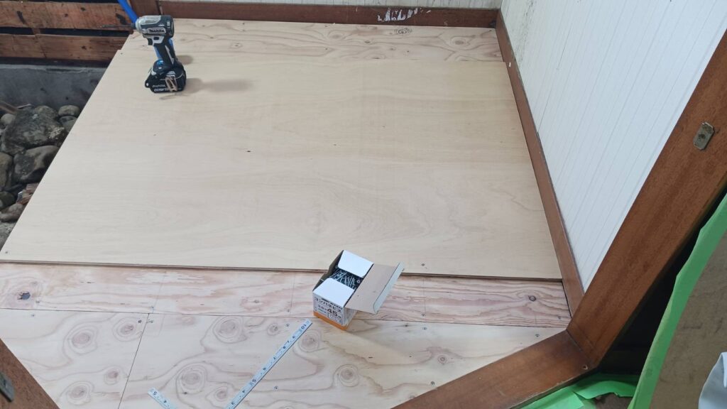今回の仕上げはクッションフロアですので「二重張り施工」が基本となります。