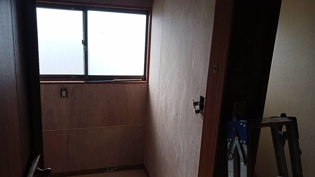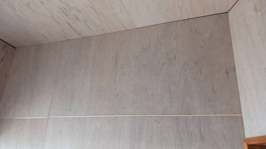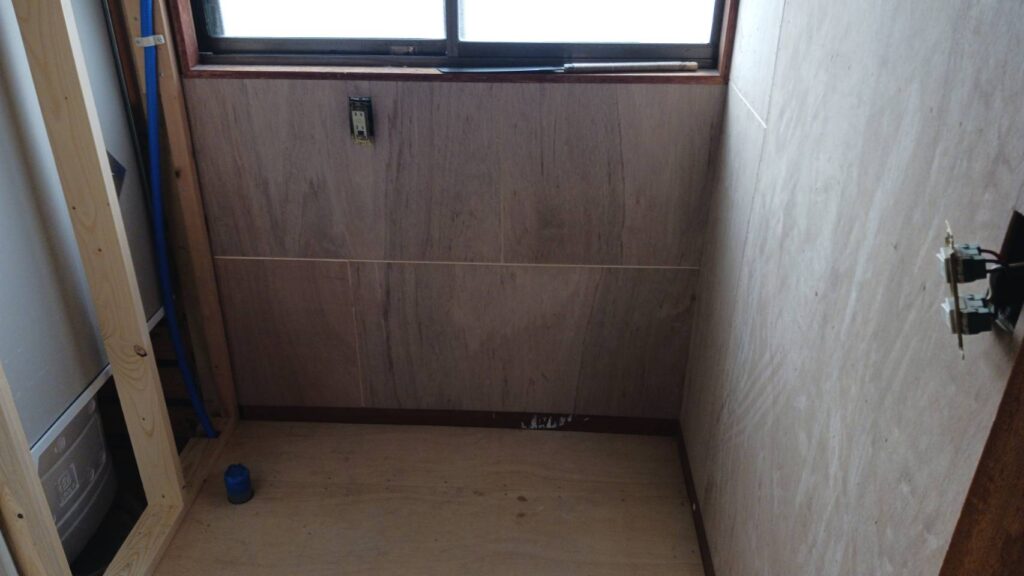 洗面所の天井と壁にベニヤの突き付け張りを行いました✨