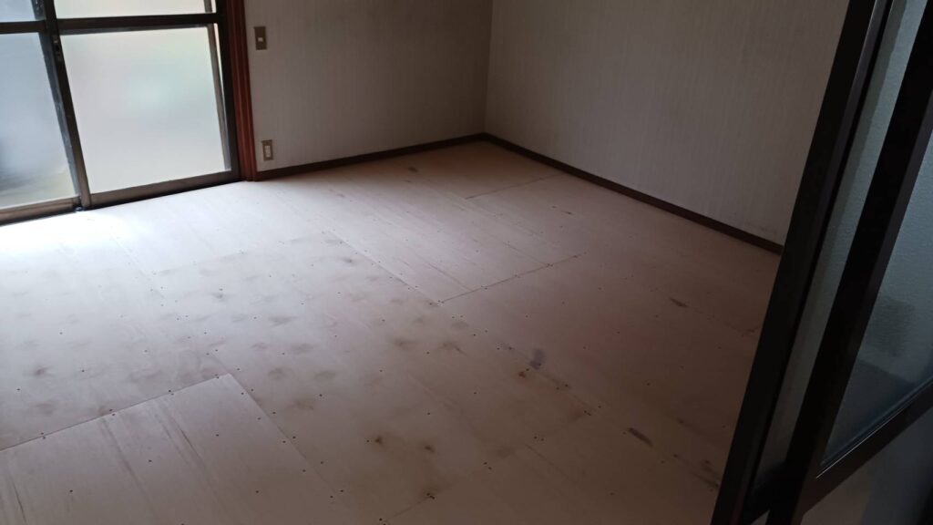 今回はその場所を補修し既存の床板の上にベニヤをビス留めを行いました🛠️