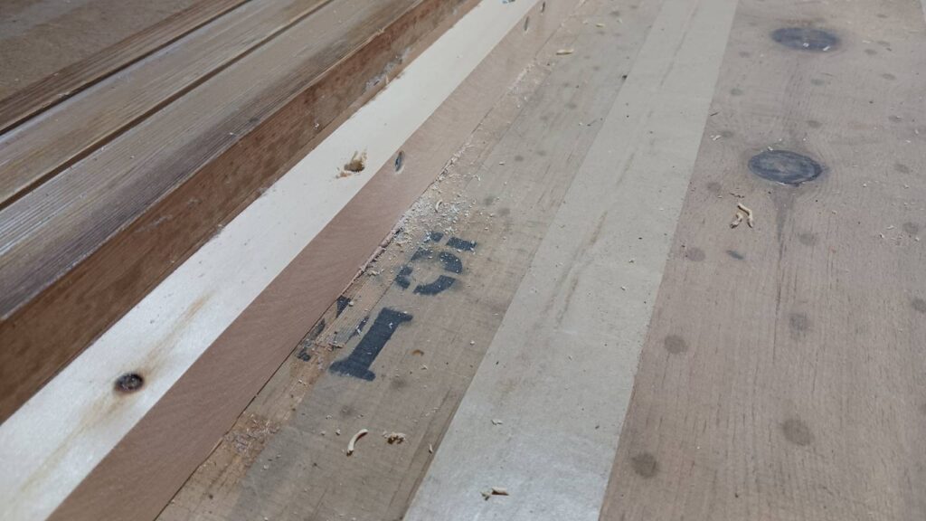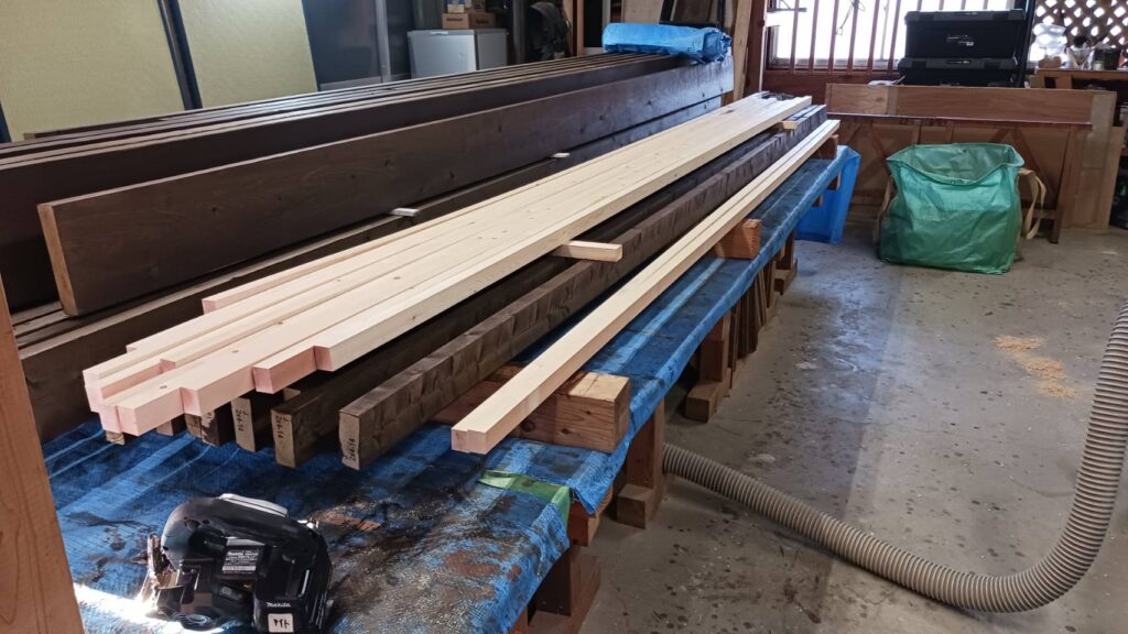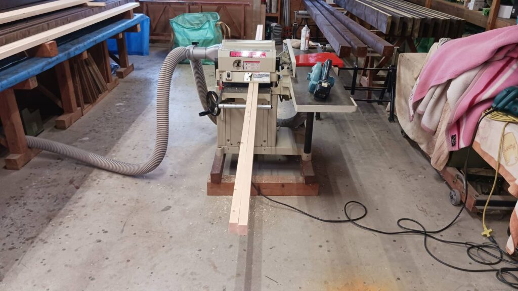 今回は根太を34mmに調整する必要があるため、プレナー(電動カンナ)で加工しました。