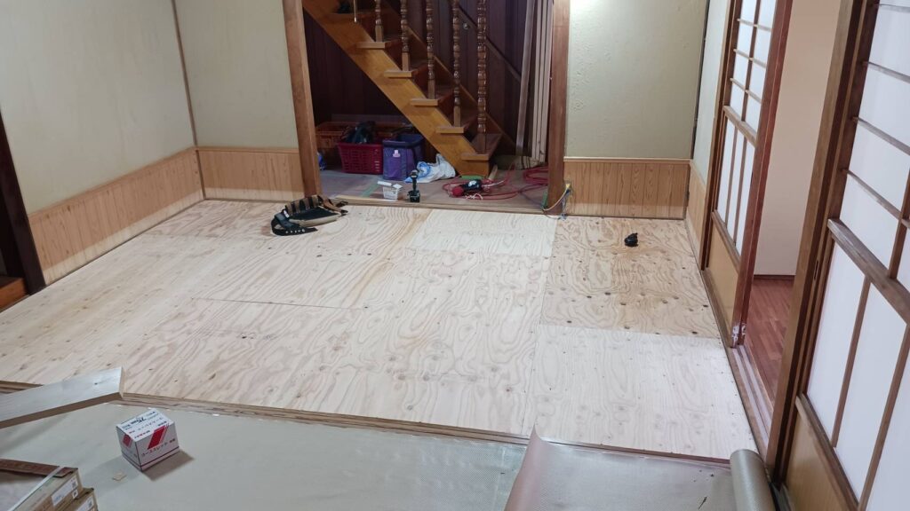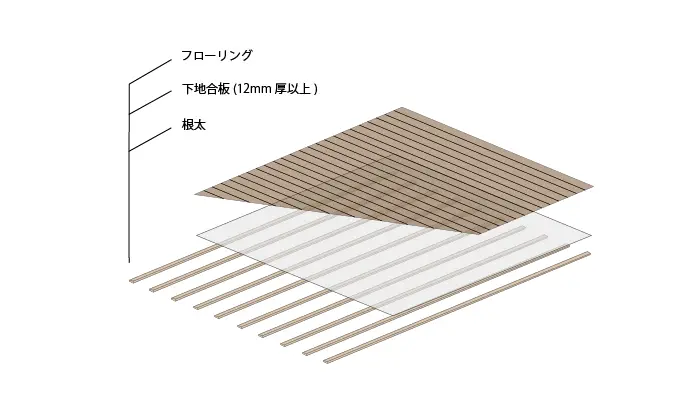 捨て張りとは:床や壁の仕上げ材を施工する前に、その下地として合板やベニヤ板を事前に張る建築工法
