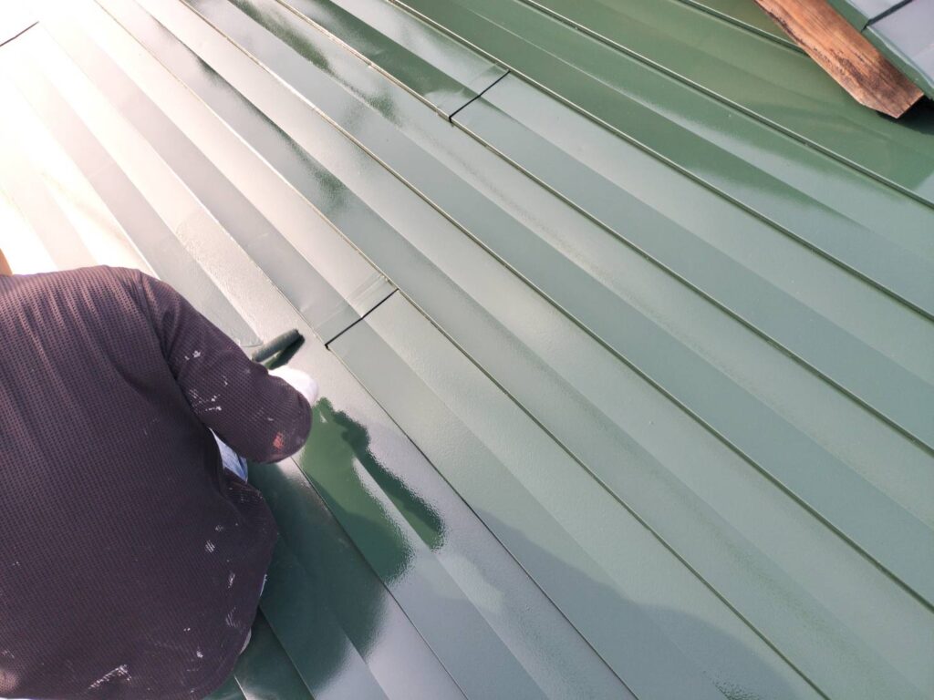 中塗りは「塗料をしっかり屋根に定着させる」大事な工程です。