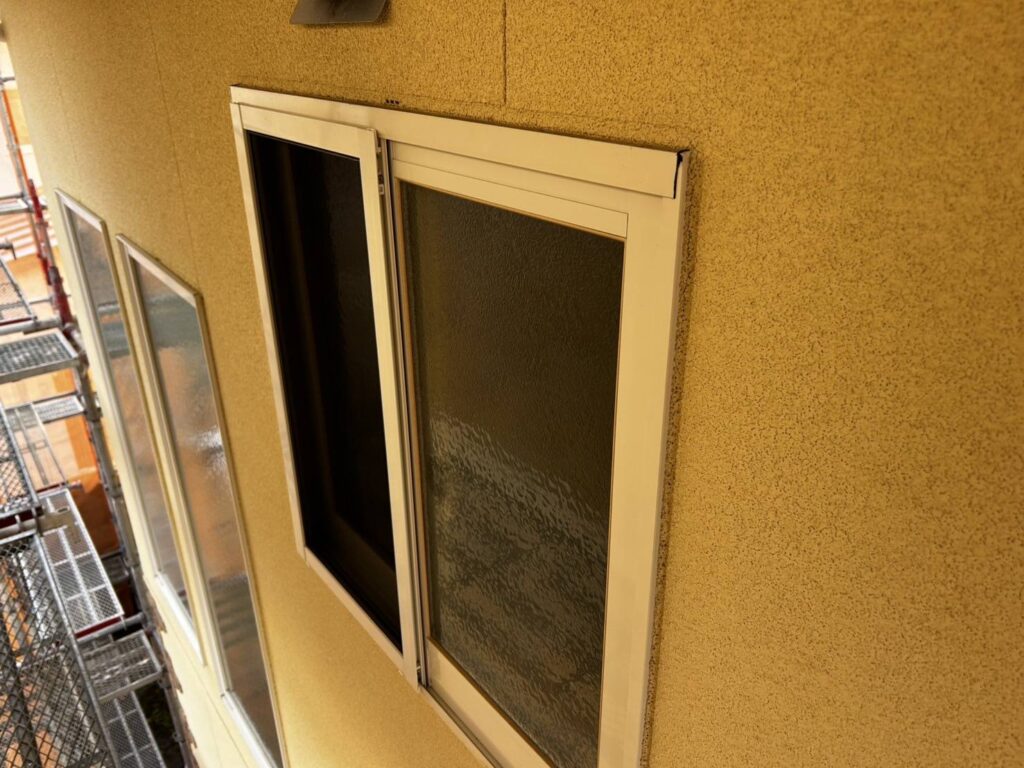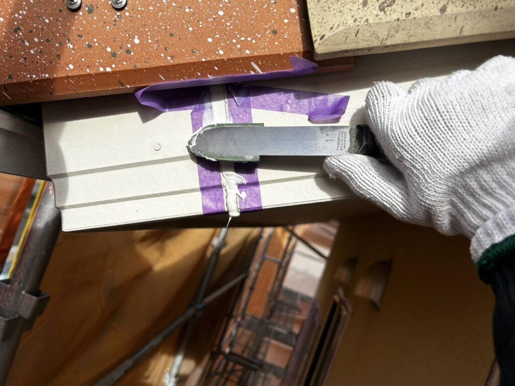 先日、足場設置→高圧洗浄までを済まし、本日はコーキング作業を行いました。