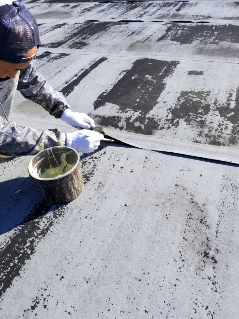 塩ビシートやゴムシートを敷き詰めて接着・固定する工法で主に大規模な屋上で採用される事が多い⭐