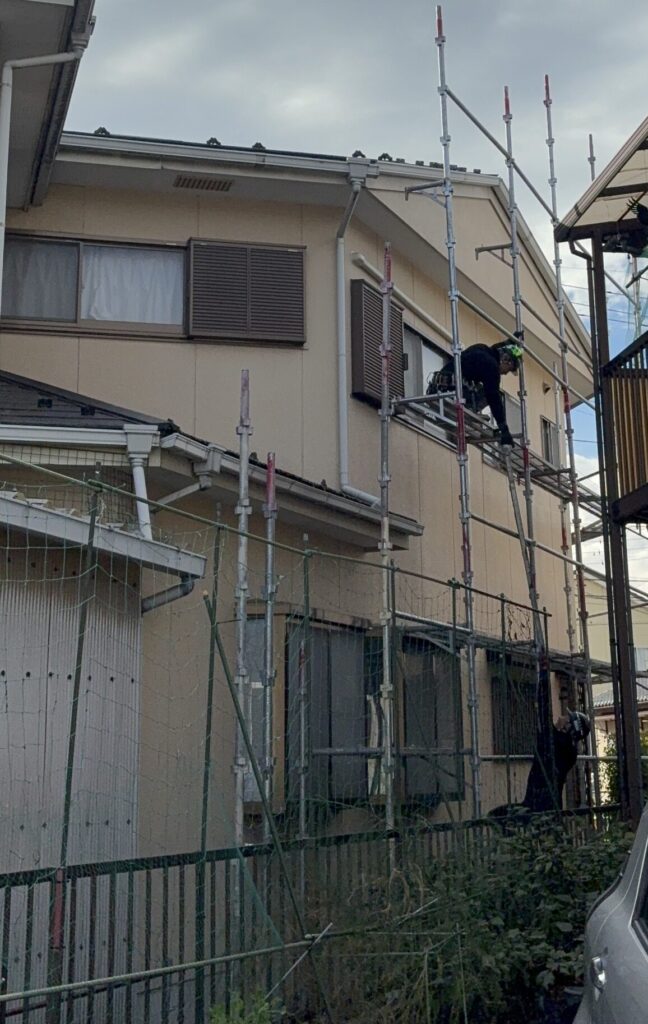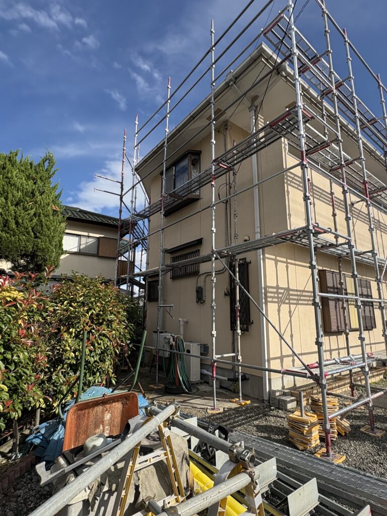 塗装工事には、欠かせない足場の設置が行われました💡