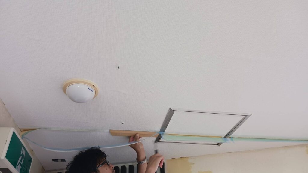 天井から下方向へクロスを貼っていきます。